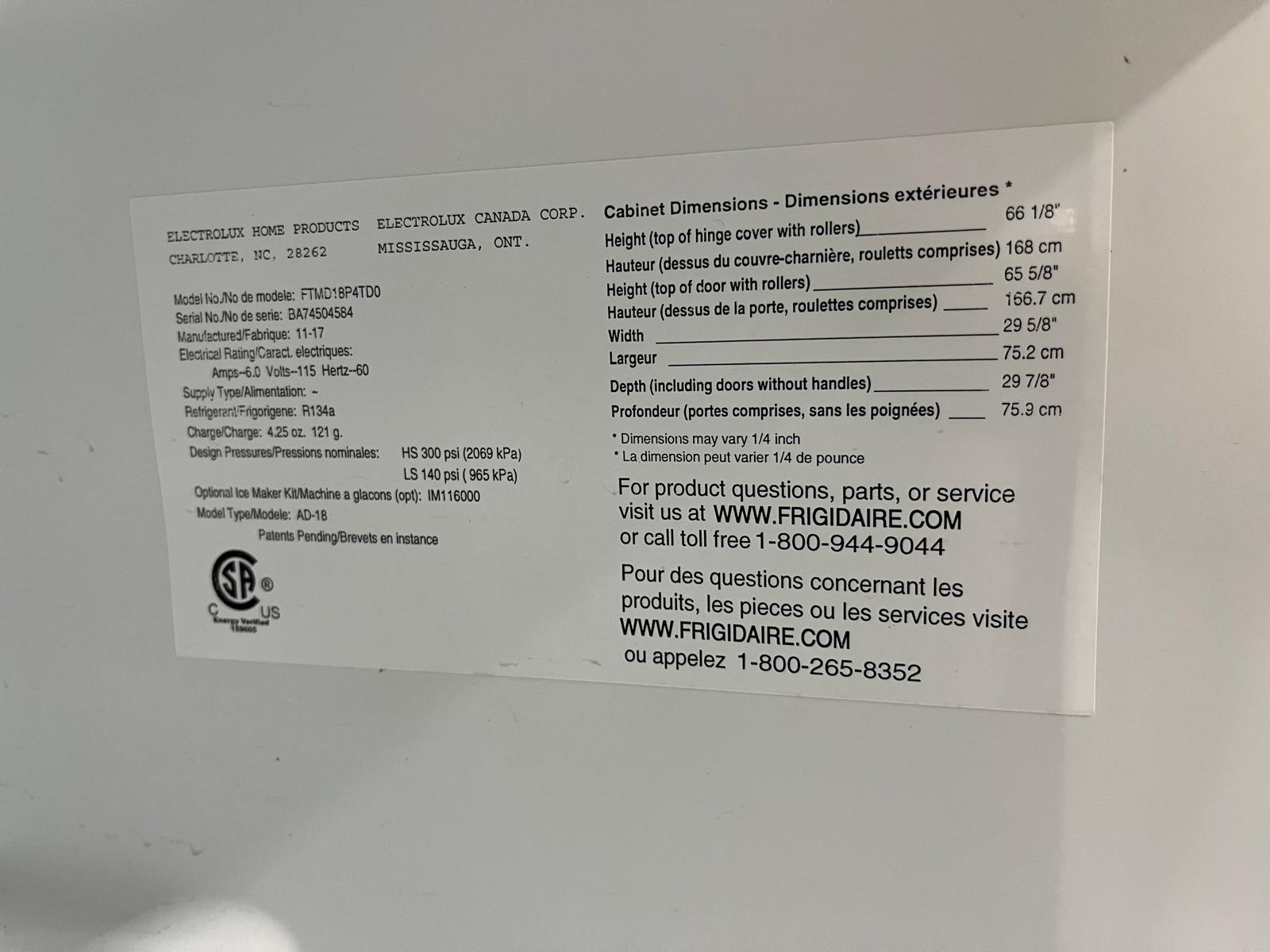 Frigidaire 18 Cu. Ft. Top Freezer Refrigerator